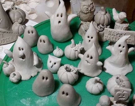 Cada pessoa, moldará um tema de Halloween: abóbora, fantasmas ou chapéu Ao finalizar a peça será pintada com engobes. O barro preciso do seu tempo para secar e ir cozer a mufla.