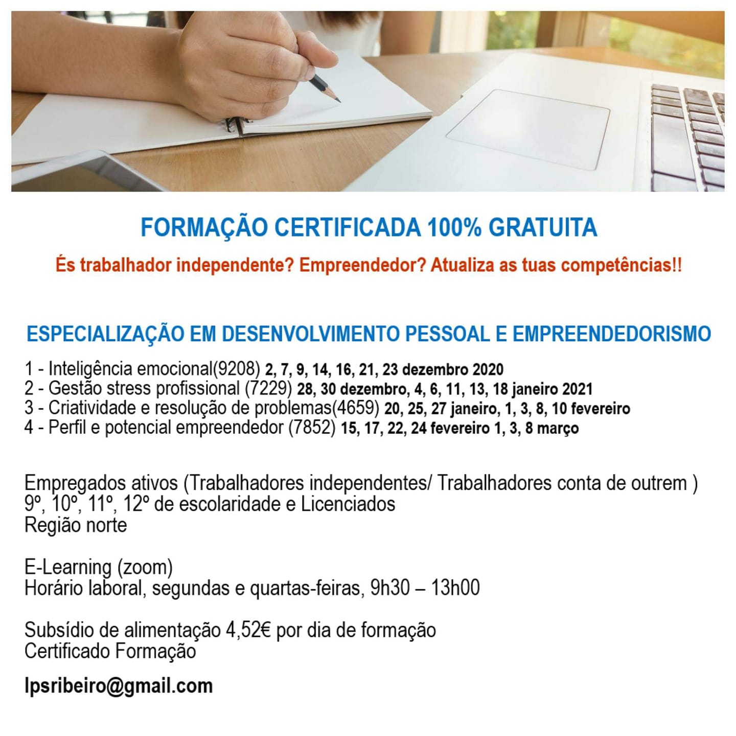 Estão a decorrer inscrições para o curso de especialização em desenvolvimento pessoal e empreendedorismo (Formação certificada online gratuita)